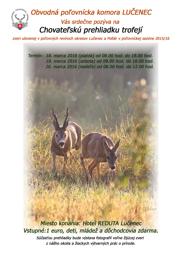 OPK Lučenec Vás pozýva na chovateľskú prehliadku trofejí za poľovnícku sezónu 2015/2016.