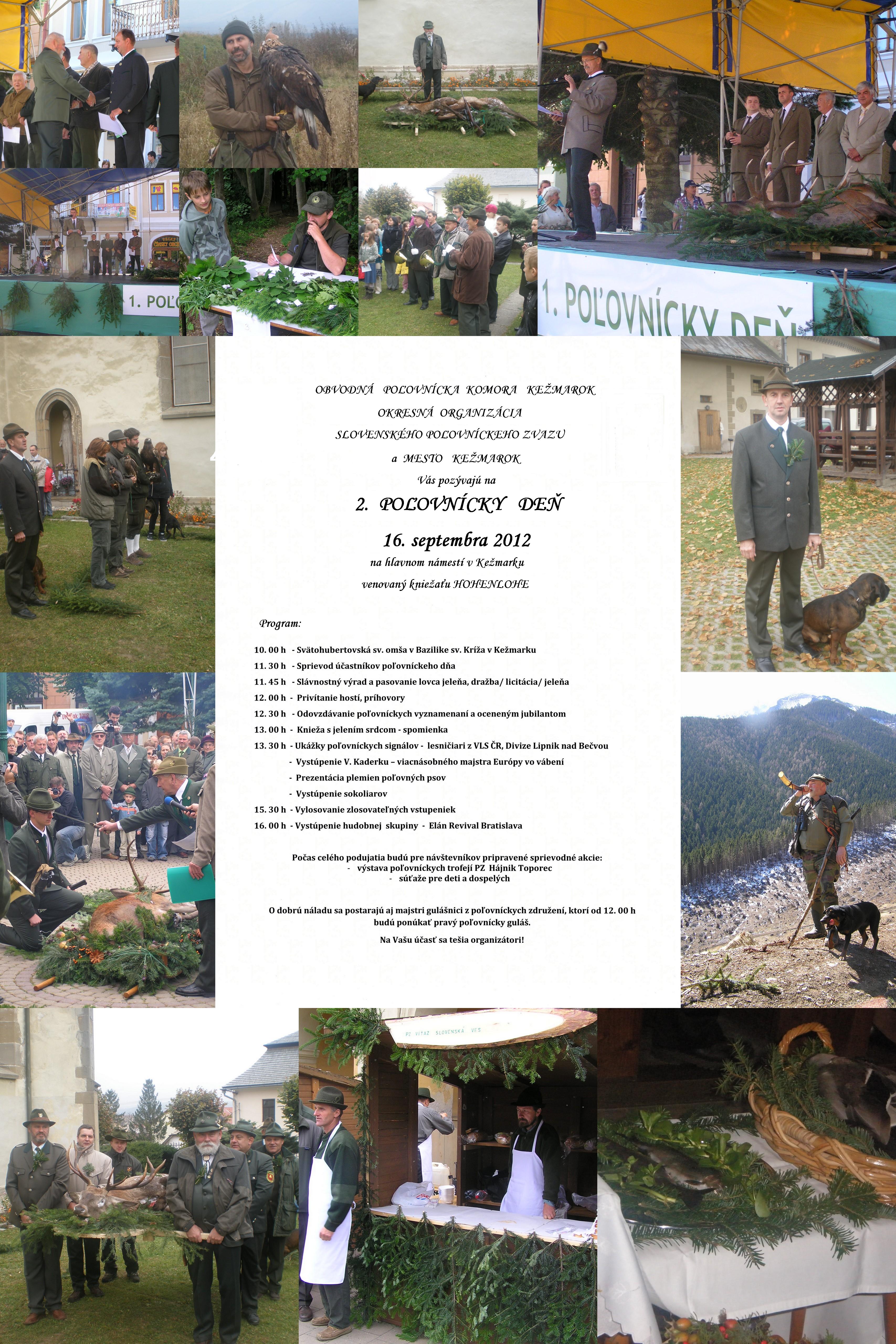 Na tejto akcii budú odovzdávané vyznamenania členom SPZ,ukážky sokoliarov, poľovných psov, stánky s poľovníckym oblečením, výstava poľovných trofejí a preparovaných zvierat, občerstvenie poľovícky guláš.