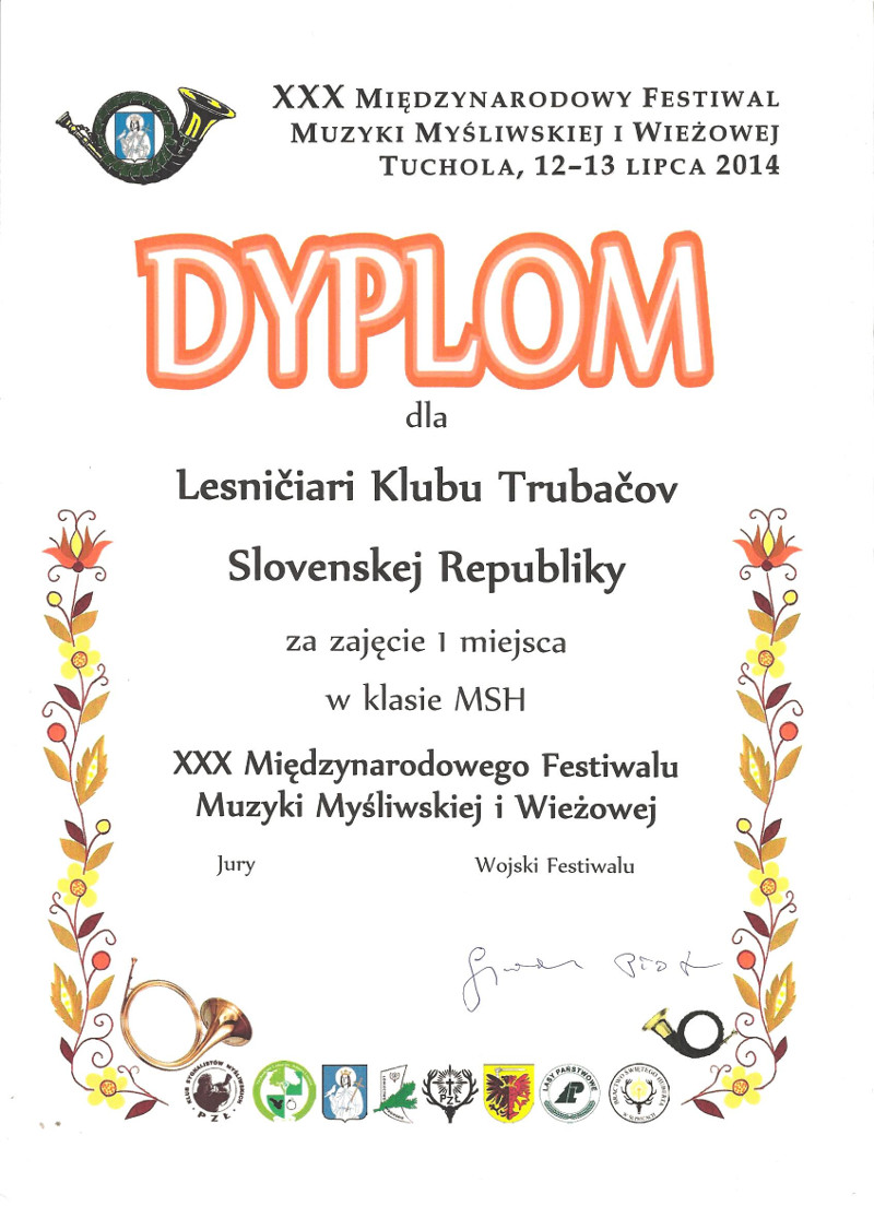 Počas júlového víkendu 12-13.7.2014 sa Lesničiari Klubu trubačov Slovenskej republiky zúčastnili 30. ročníka medzinárodného festivalu poľovníckej hudby v poľskom meste Tuchola.