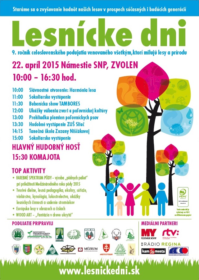 Na námestí SNP vo Zvolene sa 22. apríla 2015 uskutočnil 9. ročník lesníckych dní. Oficiálny program sa začal sprievodom pozvaných hostí, ktorí zaujali čestné miesta v blízkosti pódia. Za zvukov lesníc nasledovalo prestrihnutie zelenej pásky. Týmto aktom boli lesnícke dni otvorené, nasledovali príhovory hostí. Na hlavnom pódiu potom pokračoval celodenný program kde sa predstavili sokoliari, nasledovali ukážky poľovníckej kultúry, vábenie zveri, ukážky plemien poľovníckych psov, hudobné a tanečné vystúpenia ZUŠ a v závere koncert skupiny Komajota.