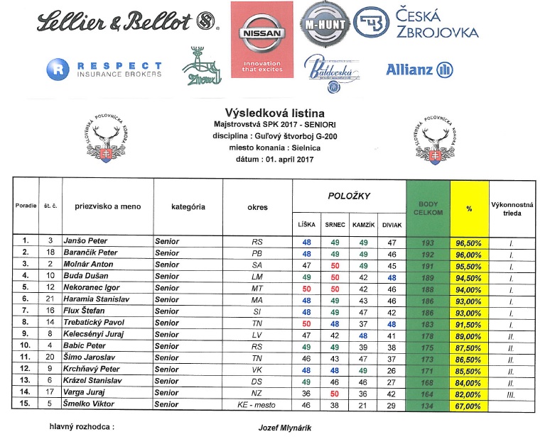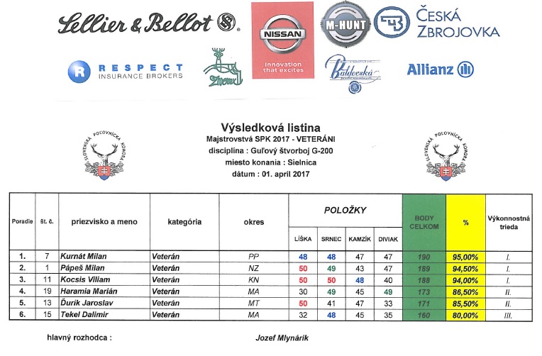 Dňa 1. apríla 2017 odštartovali prvé tohoročné Majstrovstvá SPK, ktoré doposiaľ neboli nikdy organizované v tejto disciplíne. Na strelnici SNP v Sielnici pod záštitou Obvodnej poľovníckej komory Zvolen a Slovenskej poľovníckej komory si v disciplíne guľový štvorboj G-200 zmeralo „sily“ 21 pretekárov. Predseda Streleckej komisie SPK a zároveň riaditeľ preteku p. Ing. Rudolf Huliak spolu s hlavným rozhodcom p. Jozefom Mlynárikom privítali súťažiacich a oboznámili ich s priebehom súťaže, bezpečnom zaobchádzaní so zbraňou, podávaní protestov a zákazom požívania alkoholických nápojov. Strelci boli rozdelení na dve kategórie a to veteránov, v ktorej súťažilo 6 strelcov a kategóriu seniorov, v ktorej súťažilo 15 pretekárov.