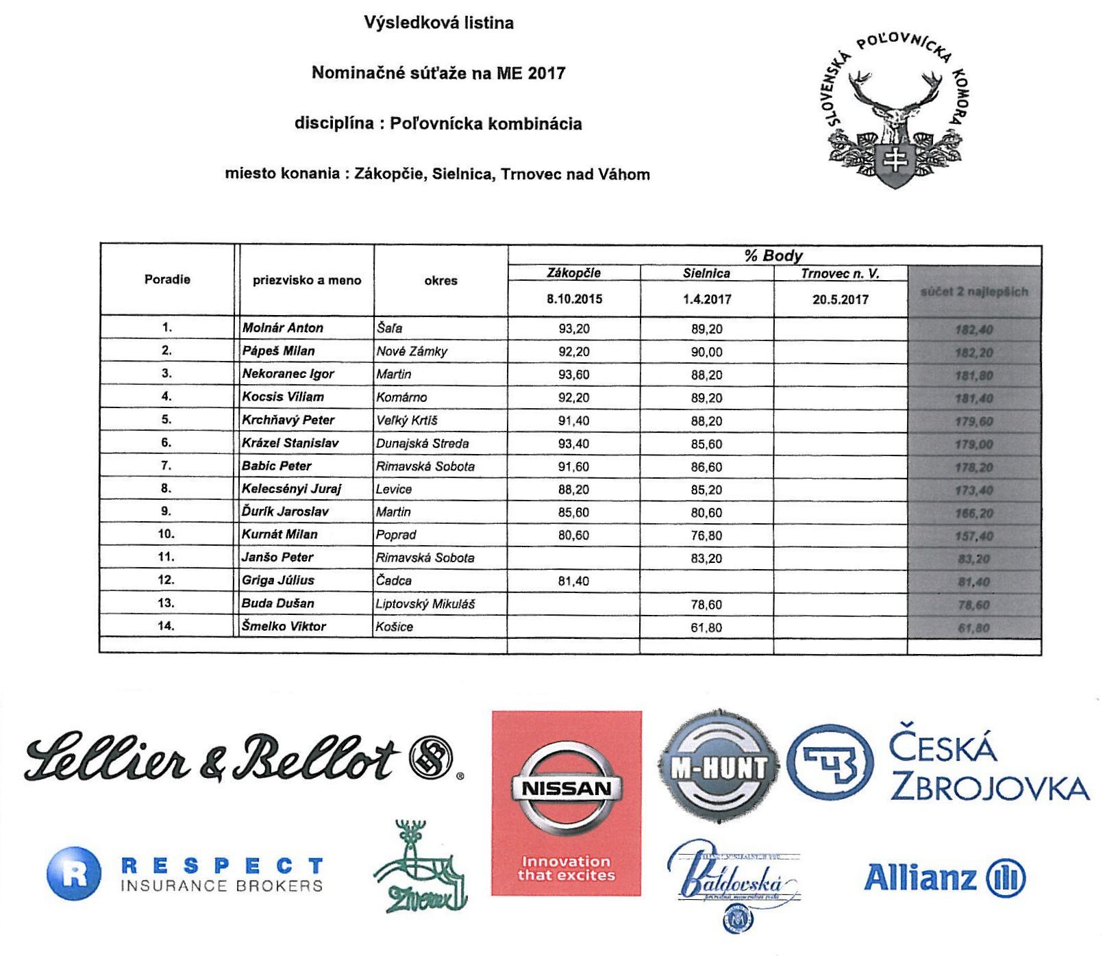 Tiež nastal presun I. kola ligy SPK v malokalibrovkovom štvorboji M 800 z 23.4.2017 na 7.5.2017 (OPK Dolný Kubín - strelnica Hruštín).