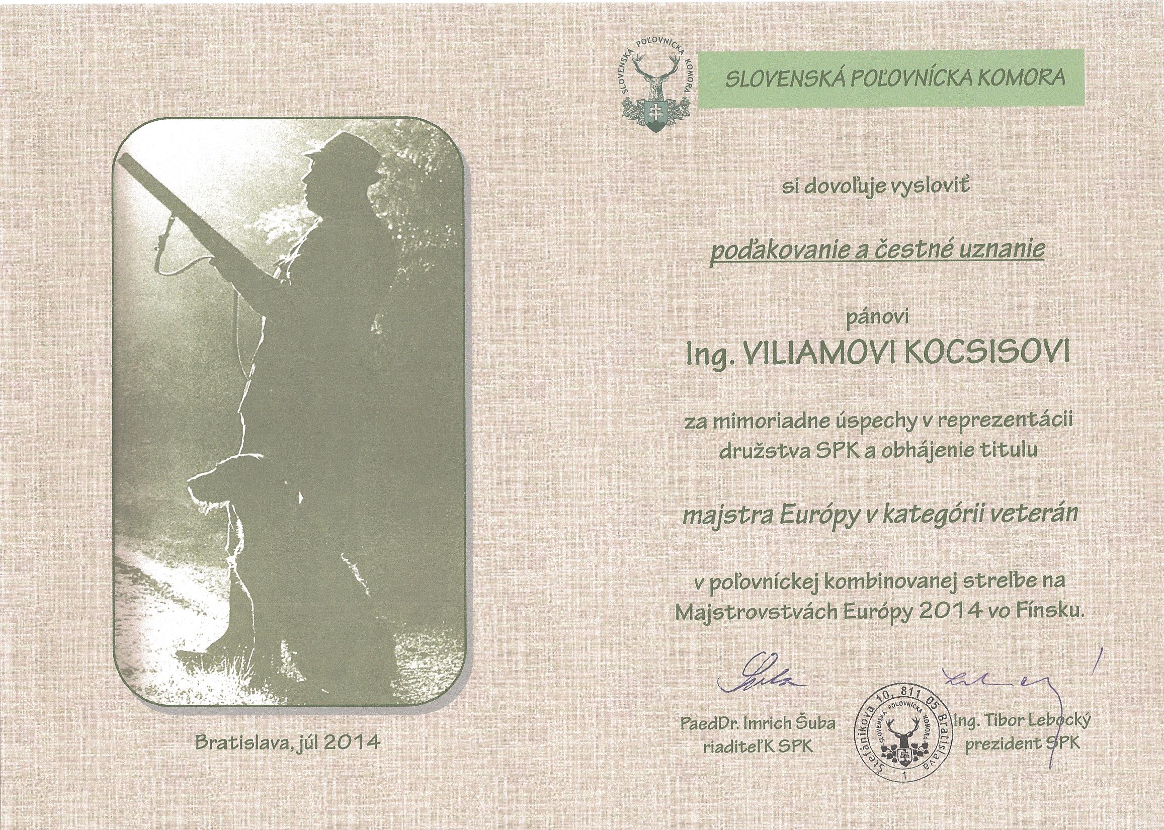 Na Majstrovstvách Európy vo Fínsku 2014 v poľovníckej kombinovanej streľbe získal pán Ing. Viliam Kocsis z OPK Komárno opätovne vynikajúci výsledok. Po štvrtý krát obhájený titul majstra Európy v kategórii veterán.