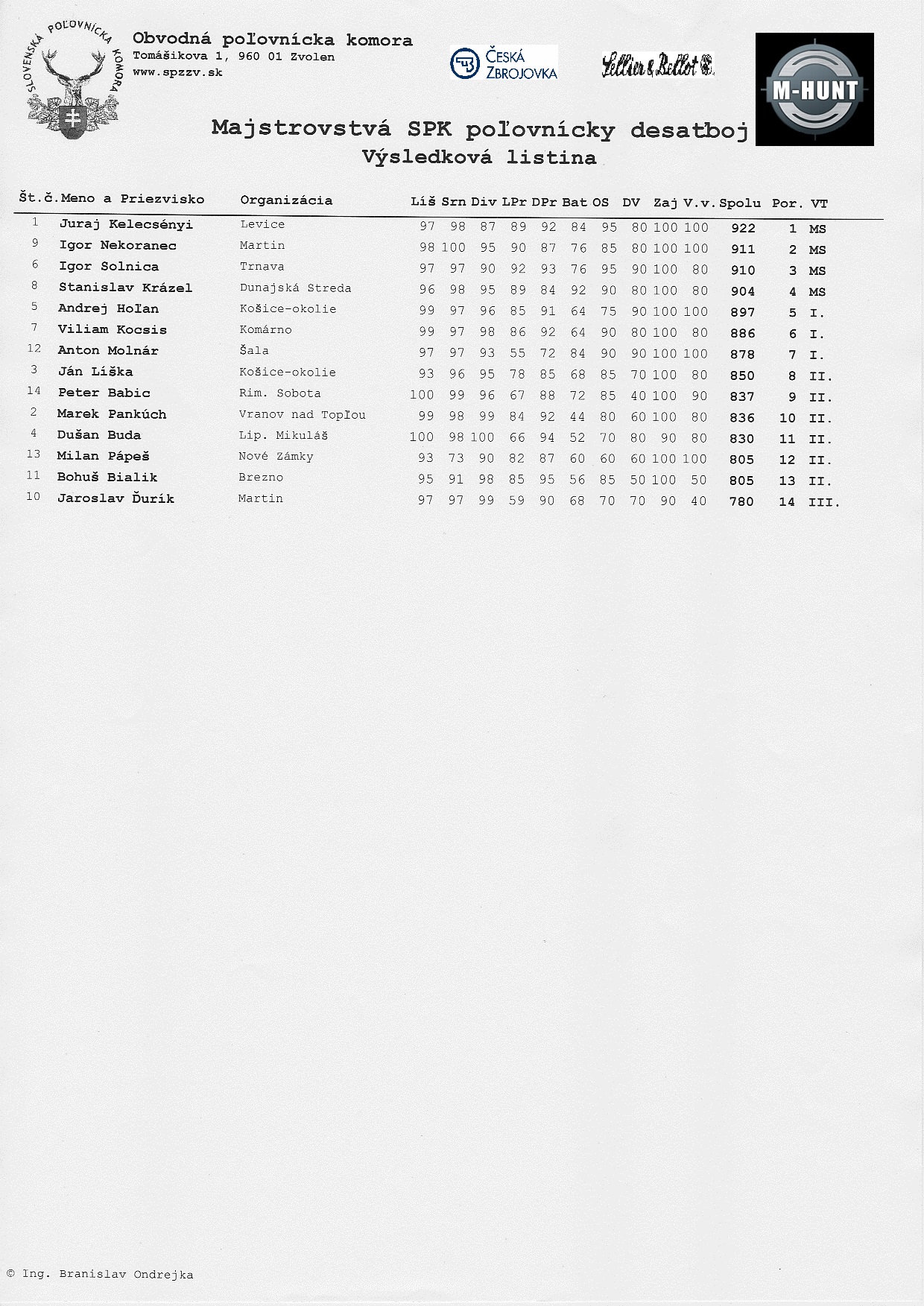 MEMORIÁL Milana Romana XVII. ročník 08. a 09. 8. 2015 na strelnici RgO SPZ ZÁKOPČIE