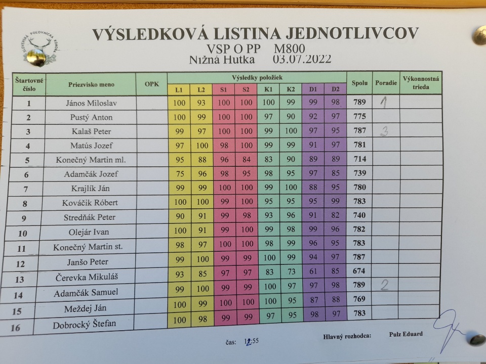Strelecké preteky Ligy SPK v disciplíne M 800, ktorý sme organizovali 25.6.2022 za účasti celkovo 40 strelcov. Medzi nimi boli aj traja hostia z juhomoravského kraja v rámci dlhoročnej spolupráce a osobného priateľstva. V napínavom preteku sa presadili favoriti aj keď o poradí sa rozhodovalo len veľmi tesne. V kategórií jednotlivcoch si pohár predsedu OPK pre najlepšieho strelca prevzal Láska Róbert zo Žarnovice, keď nastrielaľ 796 bodov , čo bolo len o bod viac na druhom mieste Štefan Fluc mladším z PZ Chropov Raková a o dva body viac ako nastrieľal Róbert Szabo z Komárna. V kategórií veteránov si pohár víťaza prevzal domáci pretekár Marián Haramia s výkonom 791 bodov, čo bolo o len bod viac ako Peter Kalaš na druhom mieste z Považskej Bystrice. Aj pohár za 3. miesto získal domáci pretekár Stanislav Haramia . A všetci pretekári získali účastnícke ceny, ktoré si osobne vyberali podľa dosiahnutého poradia.