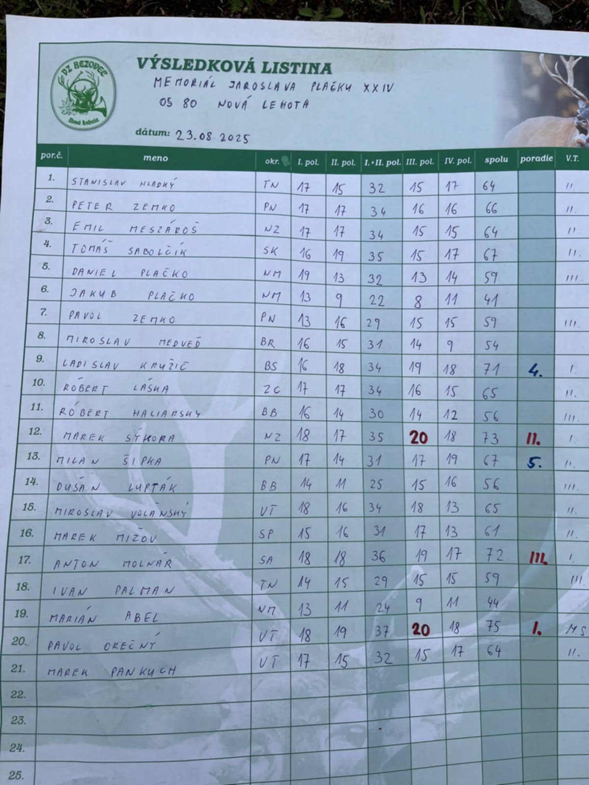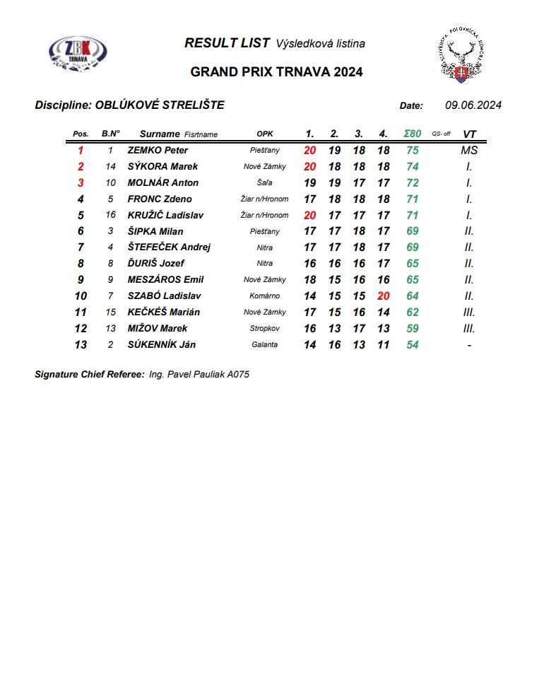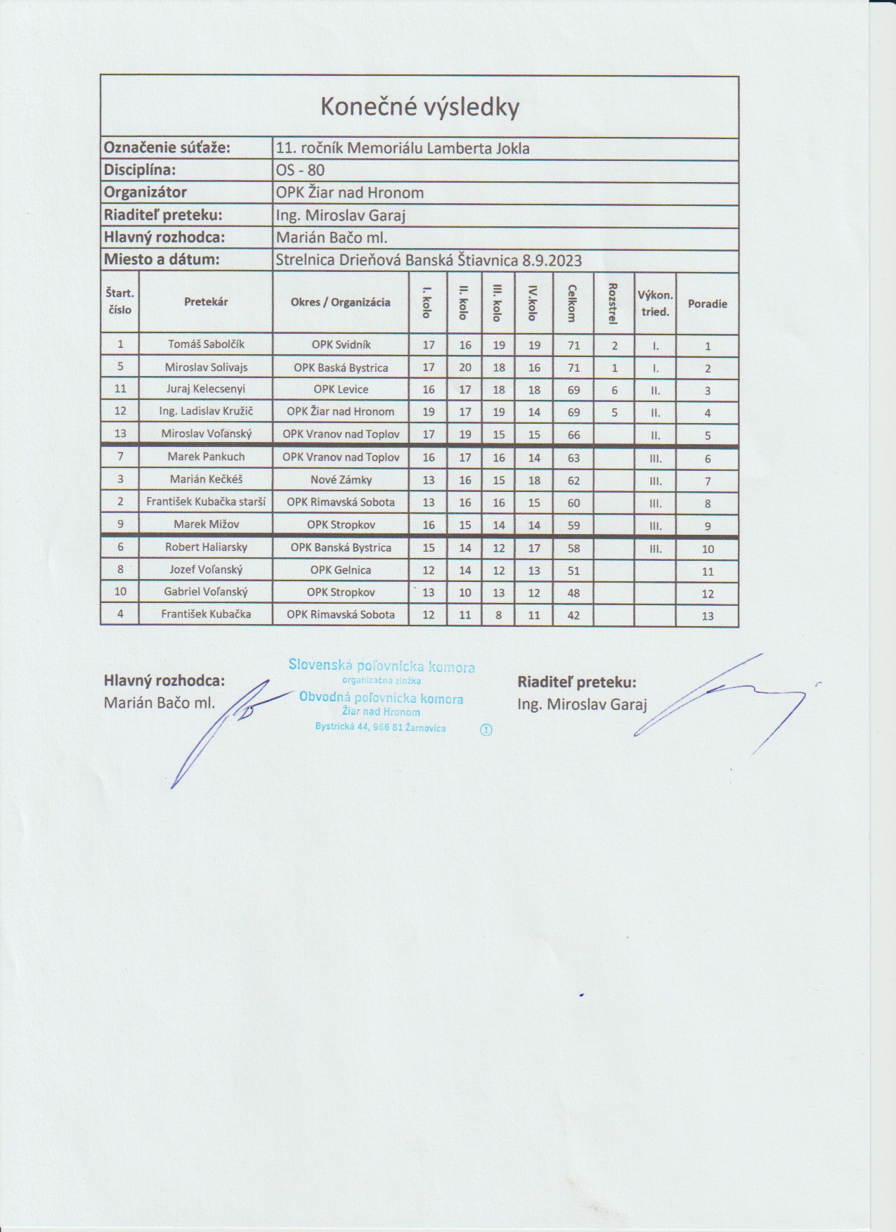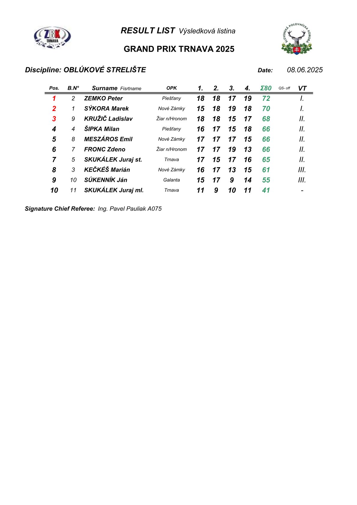 V prílohe nájdete výsledkové listiny Ligy SPK v disciplíne Oblúkové strelište OS-80,