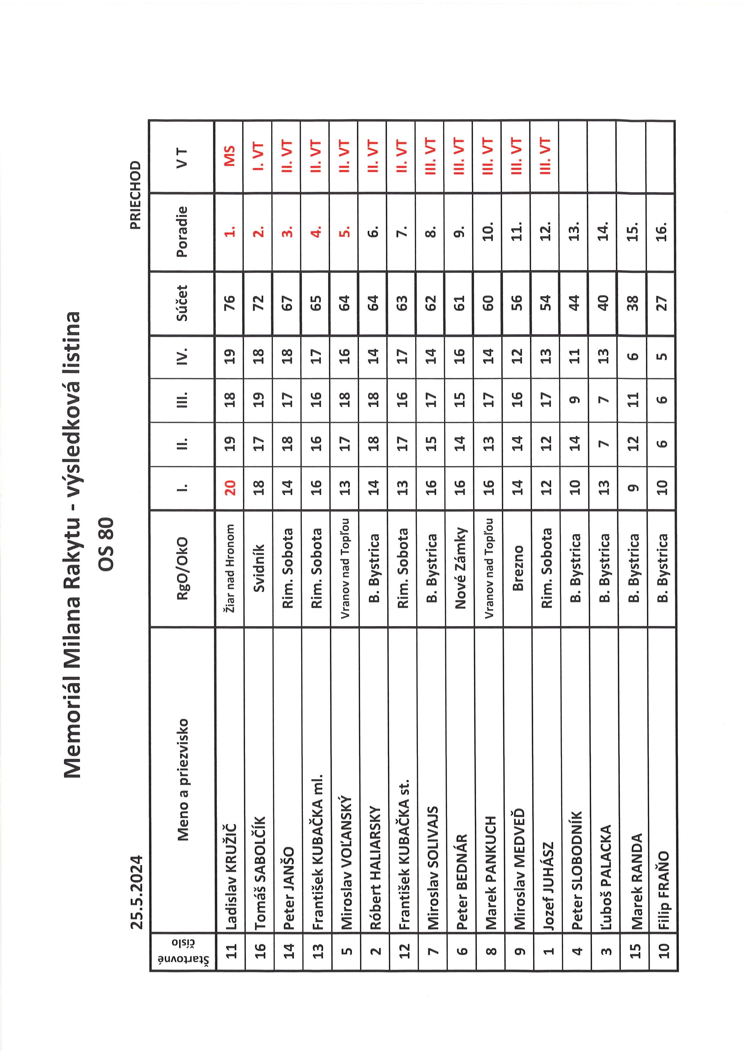 Vyhodnotenie Ligy SPK v OS-80 pre rok 2025