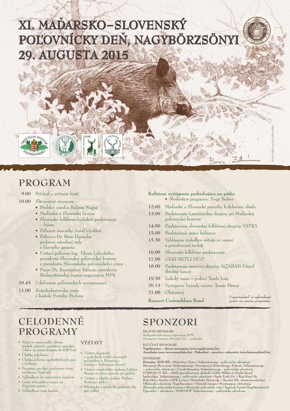 Obvodná poľovnícka komora v Leviciach pozýva všetkých priateľov poľovníctva na Maďarsko - Slovenský poľovnícky deň, ktorý sa uskutoční dňa 29.augusta 2015 v obci Nagybörzsöny v Maďarsku. Bližšie informácie a program podujatia nájdete v priloženom plagáte.