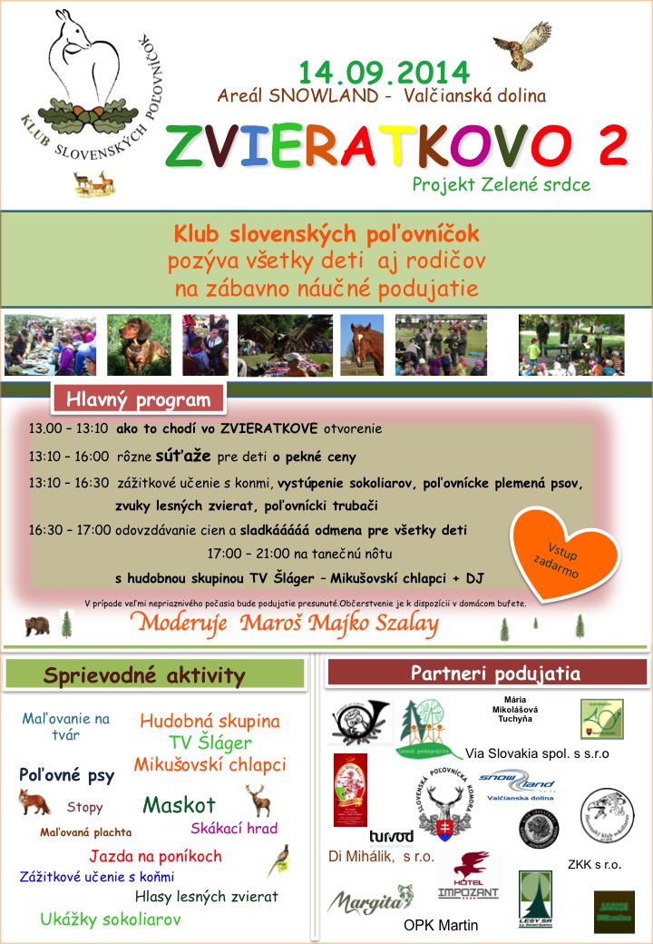 Klub slovenských poľovníčok pri SPK pozýva všetky deti a rodičov na zábavno náučné podujatie Zvieratkovo 2.