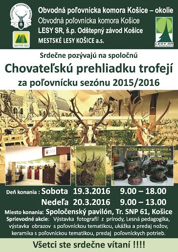 Pozývame Vás na chovateľskú prehliadku trofejí, ktorá sa uskutoční v dňoch 19.-20. marca 2016, Spoločenský pavilón, Trieda SNP 61 v Košiciach.