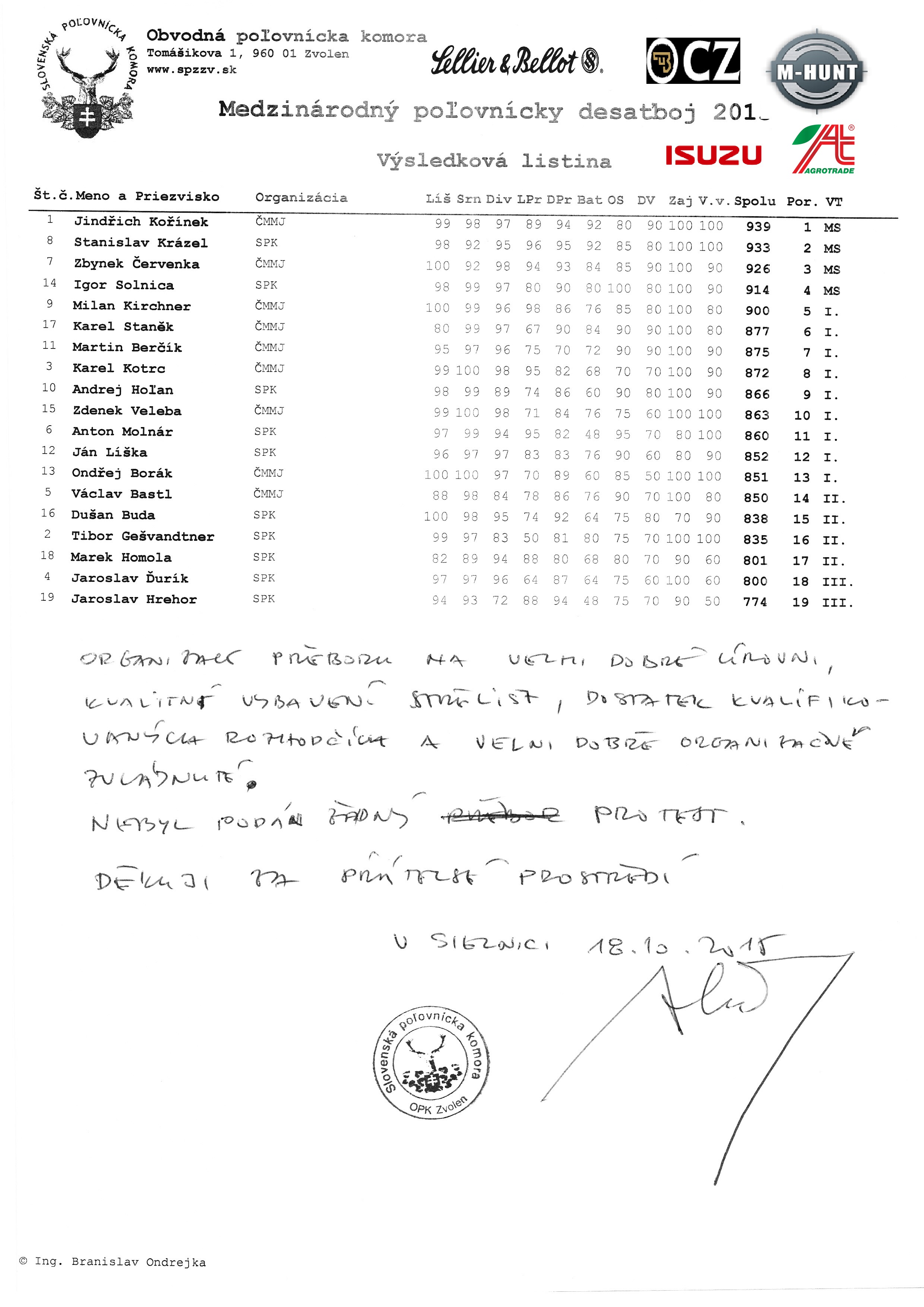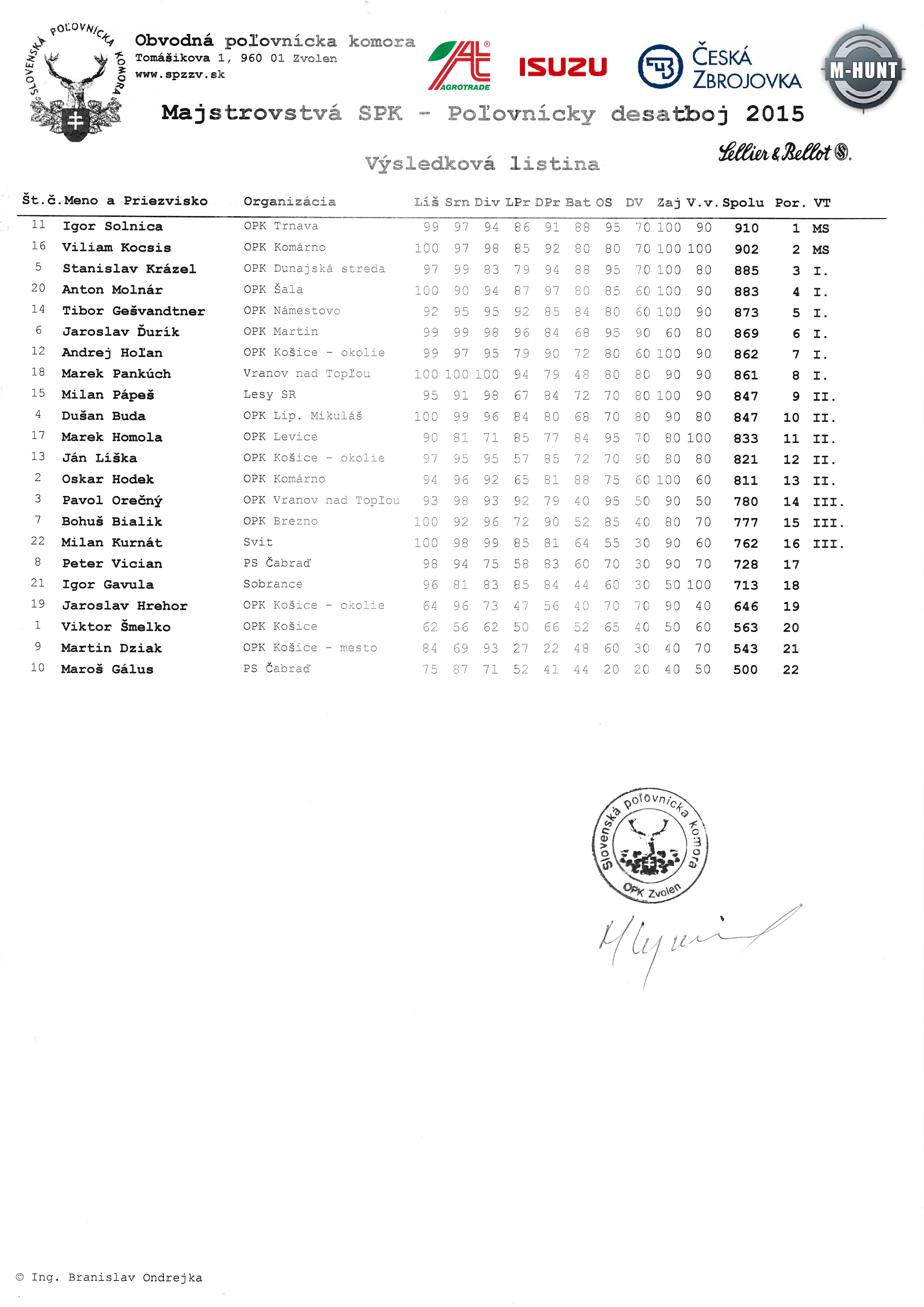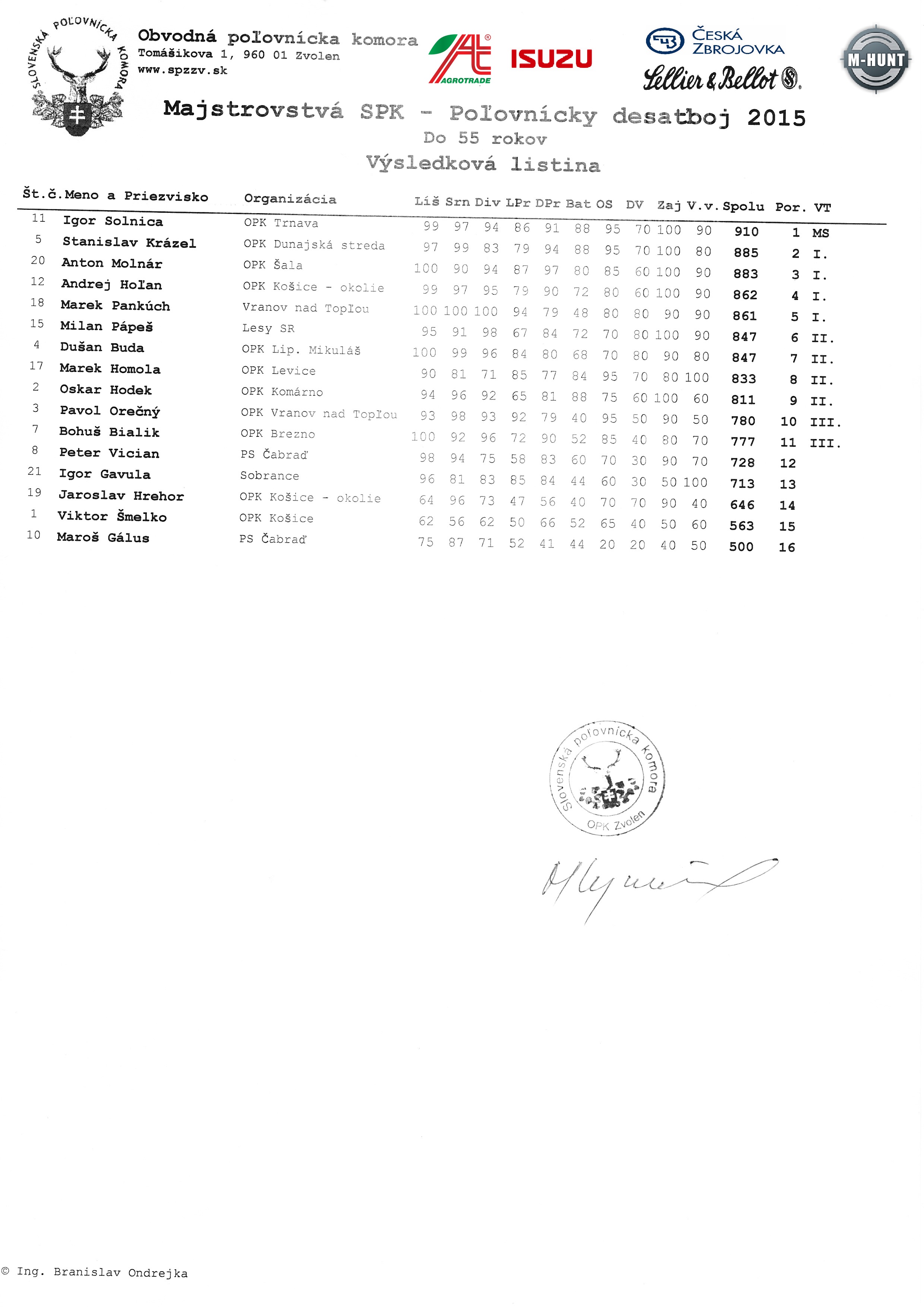 VÝSLEDKY - Poľovnícka kombinácia 10. 04. 2016 II. kolo TRNOVEC n. V.