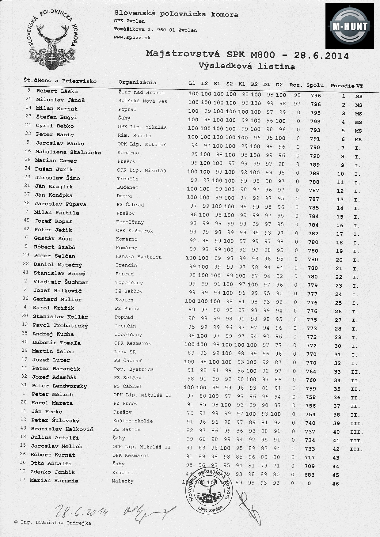 Streľby budú vykonané podľa Streleckého poriadku Slovenskej poľovníckej komory.