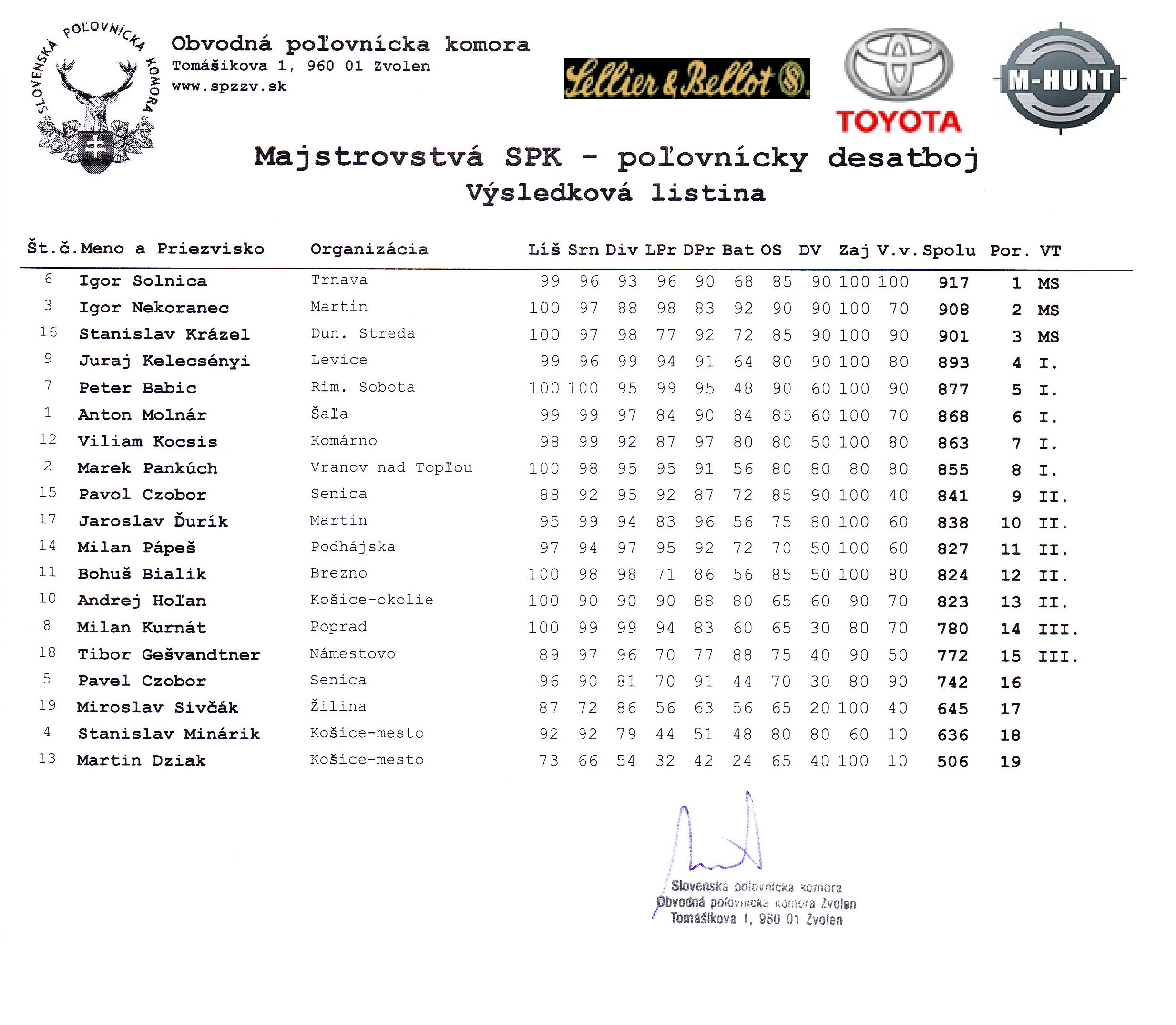 Obvodná poľovnícka komora Zvolen z poverenia Slovenskej poľovníckej komory v Bratislave usporiadajú